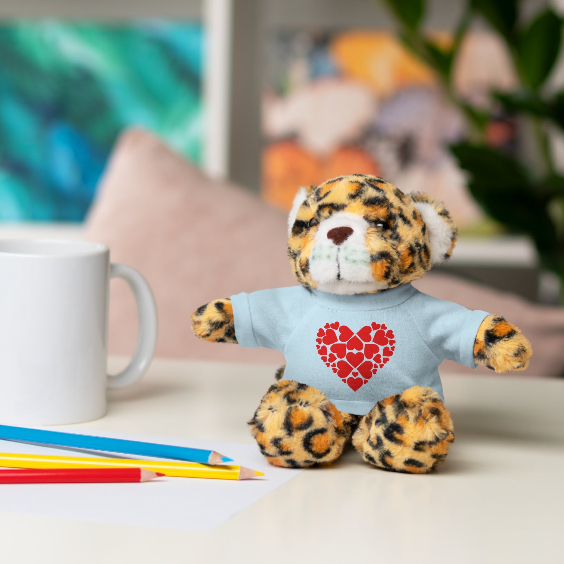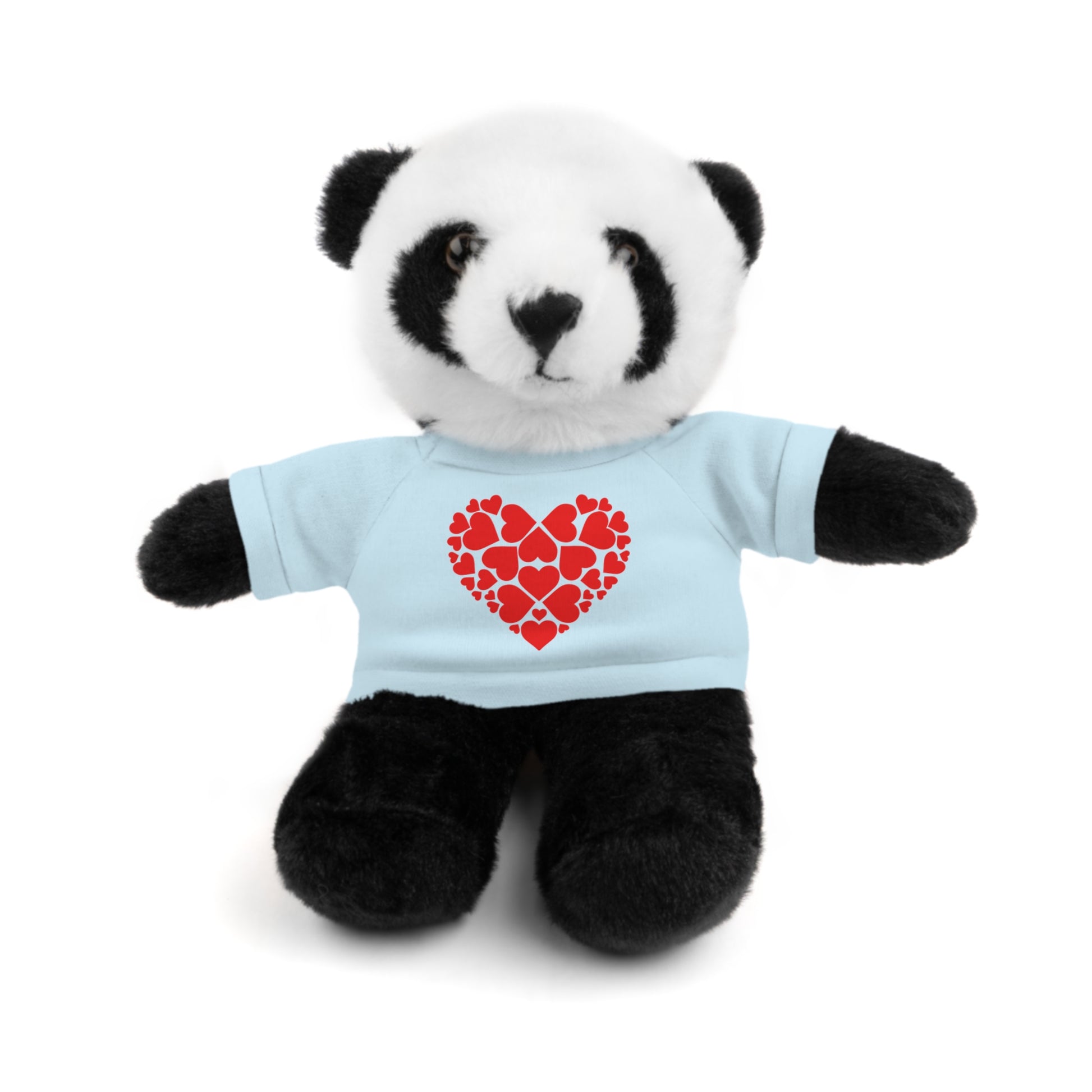 Created to put ear-to-ear smiles on any child, these stuffed animals come with a playful attitude and customizable tees. Each plushie is 8" tall, features polyester and plastic pellet stuffing, while their tees are 100% cotton. Perfect for ages 3+. Available animals: Panda, Lion, Bear, Bunny, Jaguar, and Sheep.